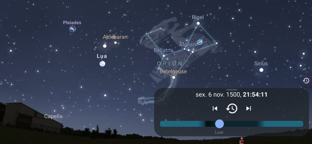 Como seria o céu de 500 anos atrás? Com o Stellarium é possível “viajar no tempo”: ele tem uma funcionalidade em que é possível ajustar a data para saber como estava o céu conforme a data que você colocar.