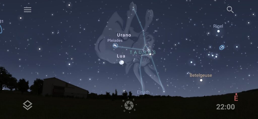 Ele mostra o desenho da constelação junto, facilitando para gravar cada uma delas. Objetos em movimento também são identificados: satélites, estações espaciais… acredite, é muito divertido.